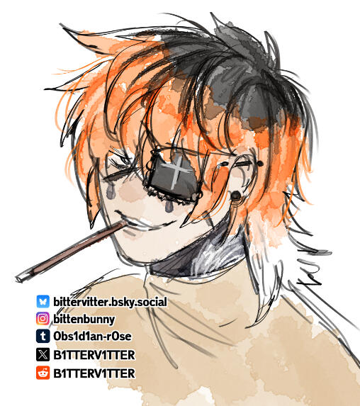 「 AKA 」@bittenbunny / @0bs1d1an_r0se / @B1TTERV1TTER「 He / Him 」Hulking mass of indolence,
